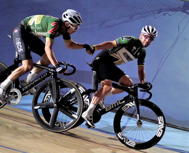 On the final day Mark Cavendish grabbed victory in the Derney race (paced by motorbikes) but, with partner Owain Doull, was narrowly beaten by Italian rivals Elia Vivianni (world champion on a gold plated bike) and Simone Consonni in the Madison race that finished the meeting in an up-to-the-end nail-biter. Madison racing, a US invention once patronisedby the likes of Sinatra and Capone, is effectively a concatenation of all the Tour de France sprints squeezed into a single hour, in a single location, with a single winning pair. All done at a breath-taking speed.